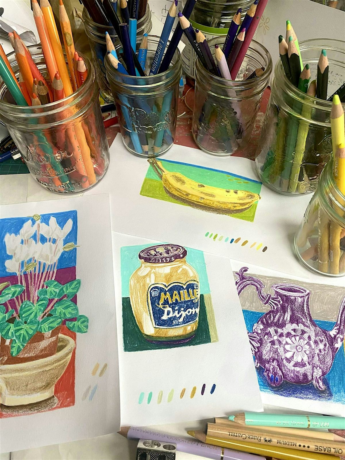 Drawing is a chance to observe and interpret the world around, and with that information, make individual decisions about line, shape and colour. This is how one’s unique visual language develops.
