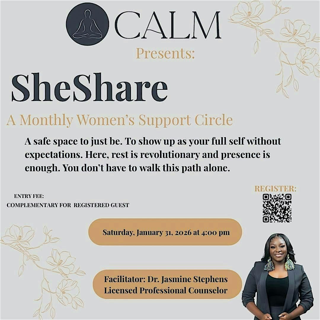 Welcome to SheShare - A Monthly Women's Support Circle! Join us for an afternoon of connection, empowerment, and community. This event is a safe space for women to share their stories, uplift one another, and build lasting friendships. Whether you need advice, a listening ear, or simply want to be surrounded by like-minded individuals, this is the place for you. Come as you are, no judgment here. Let's laugh, cry, and grow together. Mark your calendars, we can't wait to see you there!
