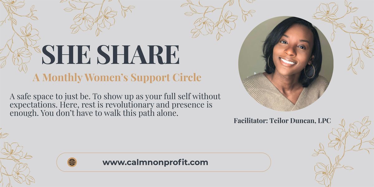 Welcome to SheShare - A Monthly Women's Support Circle! Join us for an afternoon of connection, empowerment, and community. This event is a safe space for women to share their stories, uplift one another, and build lasting friendships. Whether you need advice, a listening ear, or simply want to be surrounded by like-minded individuals, this is the place for you. Come as you are, no judgment here. Let's laugh, cry, and grow together. Mark your calendars, we can't wait to see you there!