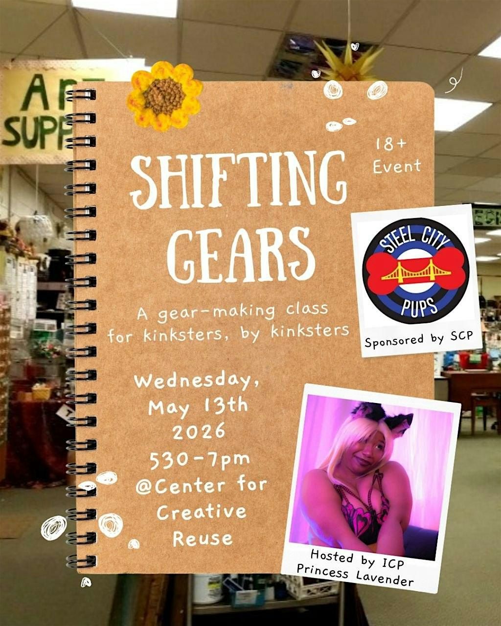 Please join Princess Lavendar, and Steel City Pups for Shifting Gears. This event is an oppurtunity for you to attend a hands on kinky gear making class, taught by members of our own community. Supplies will be provided in the entry fee, however you are free to purchase other supplies if you see something that catches your eye. We ask that you arrive promptly at 5:30PM to make sure you have enough time to complete your piece of gear.