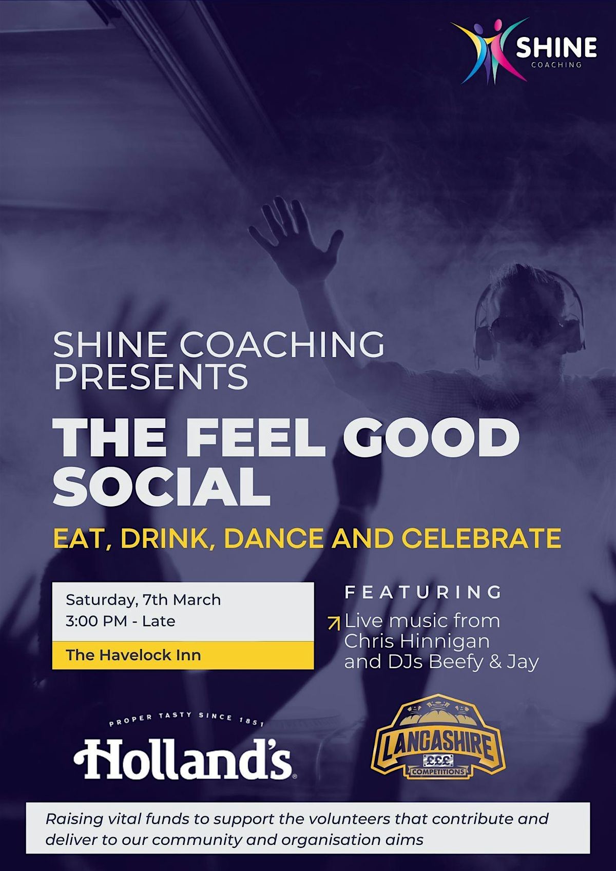 Welcome to Shine Coaching Presents- The Feel Good Social! Join us at The Havelock Inn, BB2 2QA on March 7, 2026 at 3:00 PM for an event filled with positivity and good vibes. Let's come together to celebrate, dance and have some fun togther. This is your chance to support Shine Coaching, a Blackburn with Darwen organisation who supports men's mental health and families in our community.