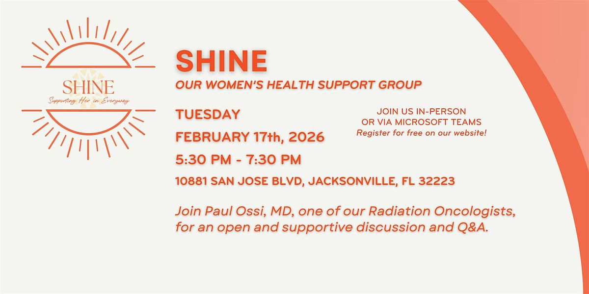 Join us on Tuesday, February 17th, from 5:30–6:30 PM for SHINE (Supporting Her IN Everyway), our women’s health support group centered on connection, encouragement, and meaningful conversation.