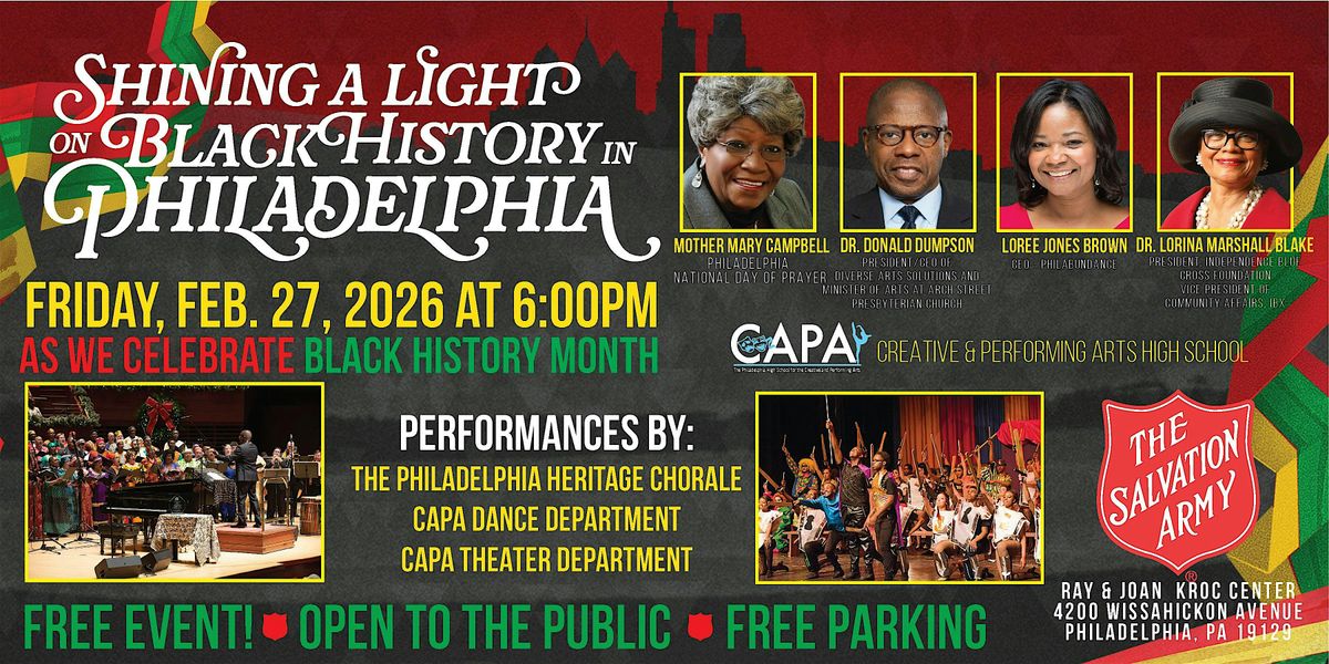 Join the Ray & Joan Kroc Center of Philadelphia for an inspiring evening as we proudly present Shining A Light on Black History in Philadelphia, a powerful Black History Month celebration honoring the leaders, artists, and changemakers who have contributed greatly to shaping our city’s story.