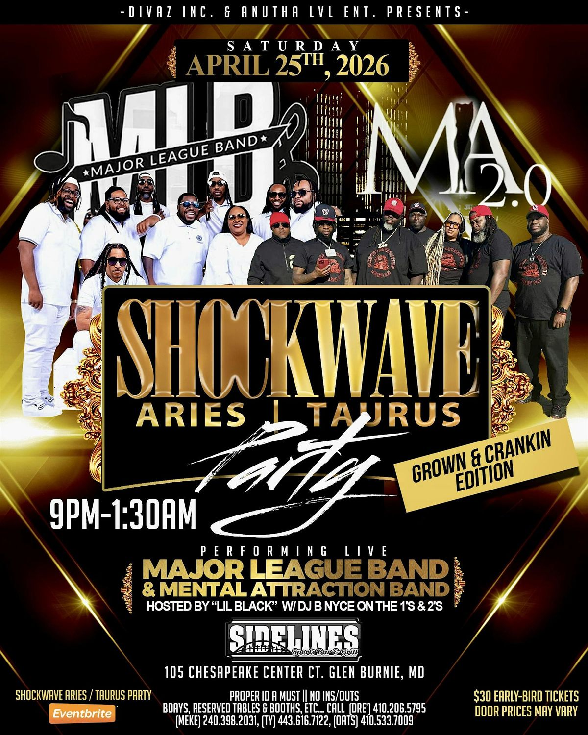 Performing live MAJOR LEAGUE BAND and MENTAL ATTRACTION BAND ....featuring DJ B-NICE …hosted by LIl BLACK