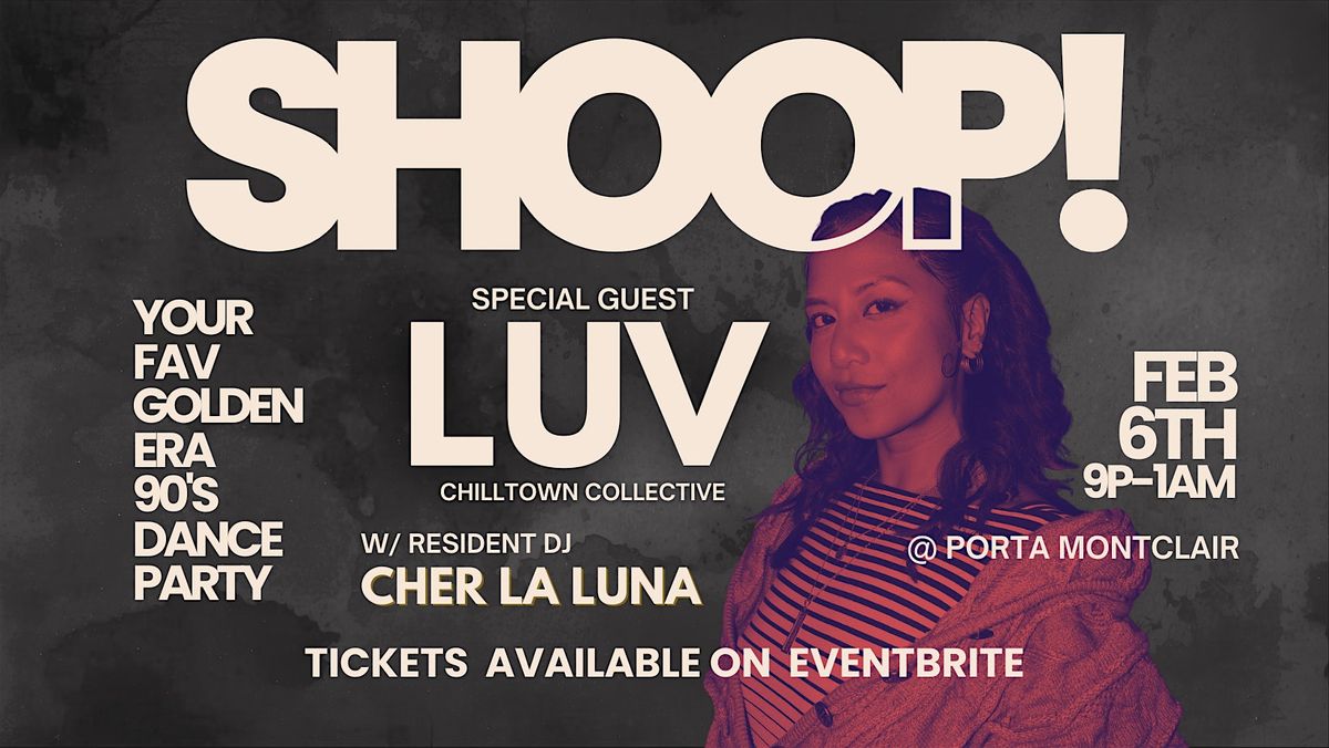Friday, February 6th from 9pm to 1am, Shoop! returns to Porta Montclair, and I’m beyond excited to share the decks with LUV. She’s the perfect fit for this night, bringing all the hip hop, R&B, dancehall, and club music that made the 90s unforgettable... with the energy to match.