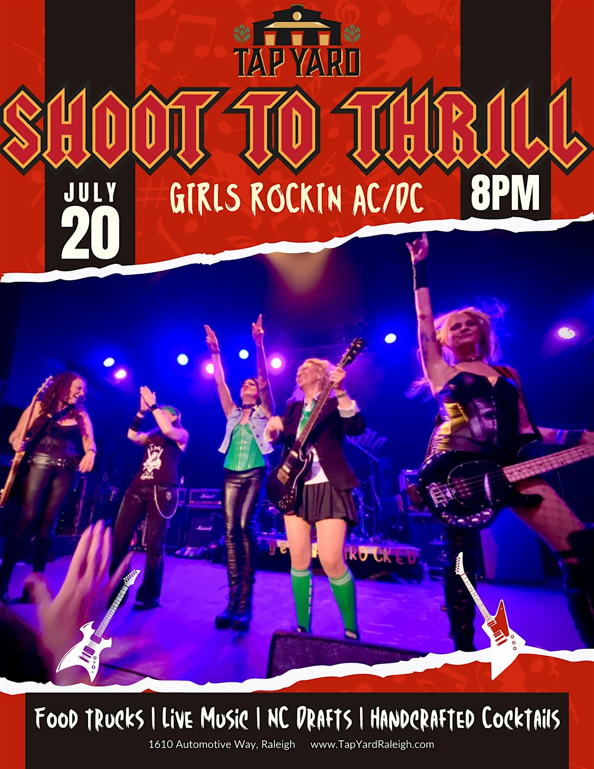 Love AC/DC?` You'll love Shoot to Thrill! Shoot to Thrill is an all-girl AC/DC cover band hailing from right here in Raleigh and touring up and down the East Coast. They'll be rockin' the Tap Yard Stage on February 28th!