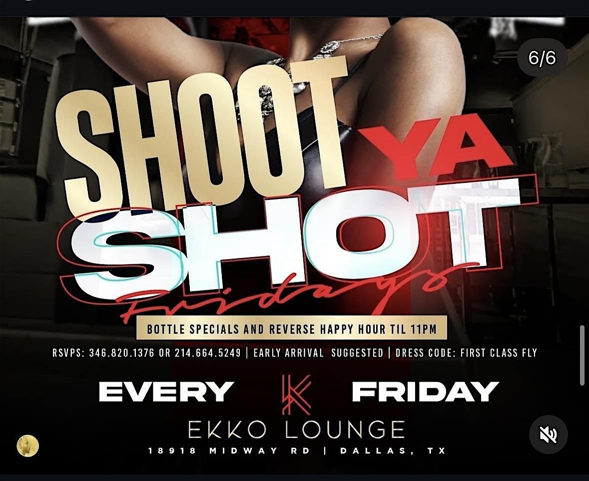 Kick off your Friday night the right way at Shoot Ya Shot Fridays inside Ekko Lounge.