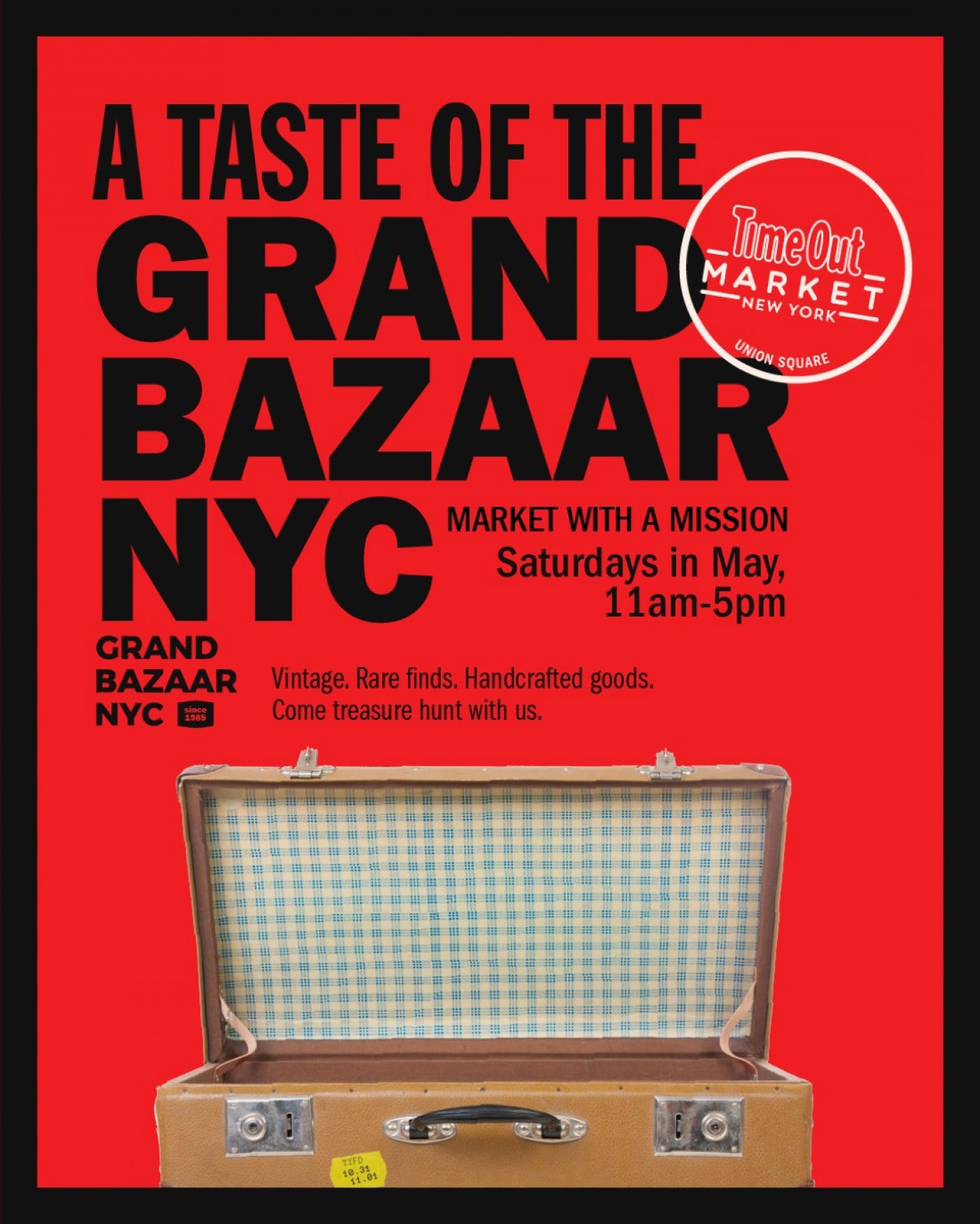 Discover a new curated shopping experience at Time Out Market Union Square (124 E 14th St.) as Grand Bazaar NYC opens a vibrant pop-up on Saturdays in May from 11 AM to 5 PM. Grand Bazaar NYC is the oldest, largest, and most diverse curated weekly market in New York City. Known as the market with a mission, it provides affordable retail space to local independent artists, designers, craft-makers, vintage and antique dealers, and artisanal food entrepreneurs, while donating funds to four local public schools, benefiting over 2,000 children. This lively marketplace showcases an eclectic mix of vendors offering everything from vintage fashion and coveted designer bags to artisan home goods, upcycled treasures, high-end antiques, and one-of-a-kind jewelry. Blending sustainability with style, the pop-up invites fashion lovers and trendsetters alike to browse, discover, and shop consciously in the heart of Union Square. At Time Out Market Union Square, a vast array of vendors—including Bklyn Wild, Kam Rai Thai, Fornino, Tacos Fonda and more ensure guests can seamlessly grab a bite and shop all in one vibrant space. For more information, visit: https://www.timeout.com/time-out-market-union-square