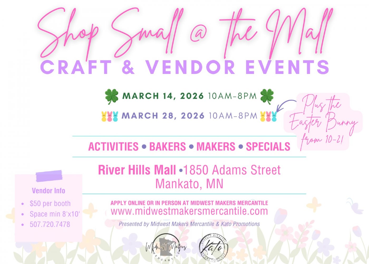 Shop Small at the Mall hosted by Midwest Makers Mercantile & Kato Promotions! Midwest Makers Mercantile is located near Target and will be the hub for these exciting events!
