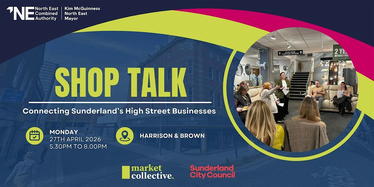 Running a high street business isn’t always easy, and sometimes, it can feel a little lonely. That’s why we’ve created Shop Talk: a friendly get-together where Sunderland and Washington retailers and service businesses can come together, share experiences, and support one another.