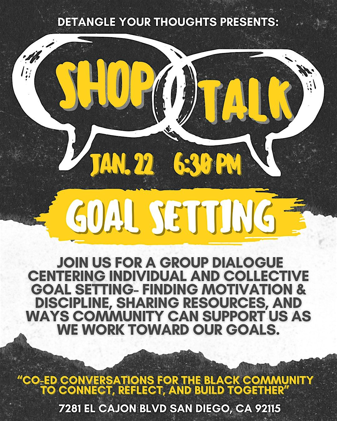 Join us for a group dialogue centering individual and collective goal setting- finding motivation & discipline, sharing resources, and ways community can support us as we work towards our goals.