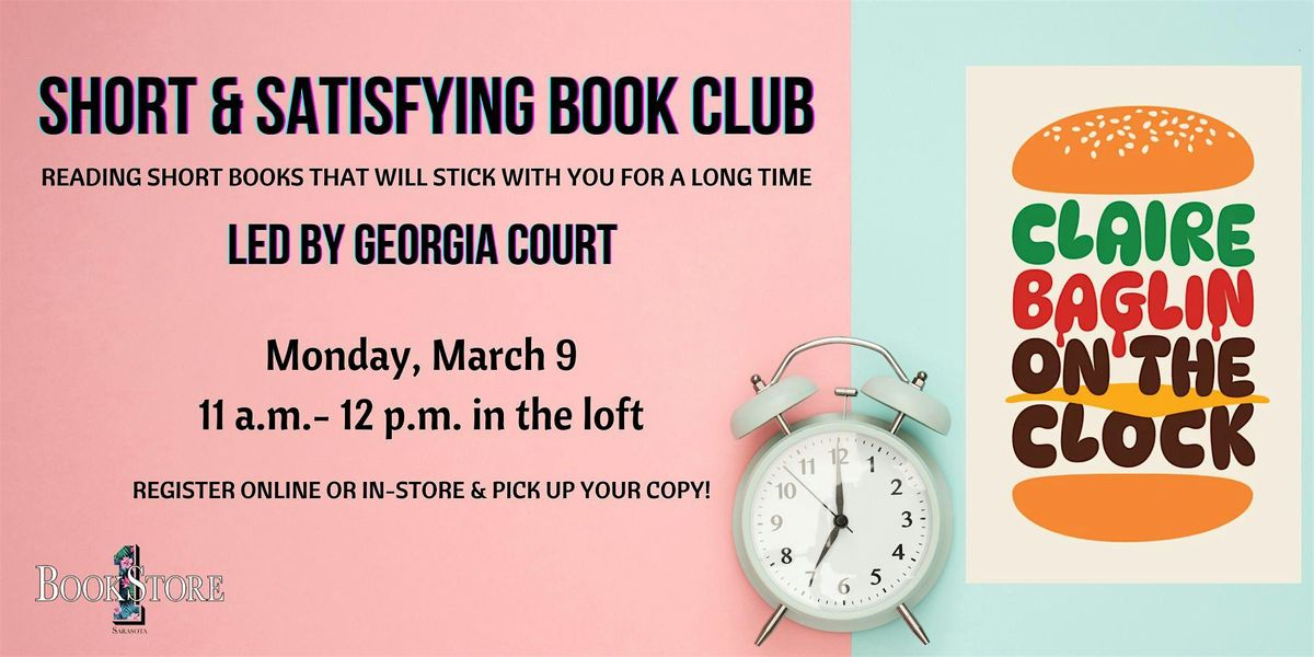 The Short and Satisfying Book Club, led by Georgia Court, is for those looking for a shorter read that is ripe for discussion. March's selection is On the Clock by Claire Baglin (translated from French by Jordan Stump. A marvelous debut, this tender and painful portrait of French working-class life finds shards of poetry inside the twin hardships of poverty and service work.