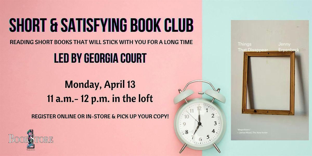 The Short and Satisfying Book Club, led by Georgia Court, is for those looking for a shorter read that is ripe for discussion. April's selection is Things That Disappear by Jenny Erpenbeck (translated from German by Kurt Beals). The bestselling and award-winning German author Jenny Erpenbeck has gained international praise for her novels, including Visitation, Kairos, and Go, Went, Gone. Things That Disappear is an exciting collection of interlinked miniature prose pieces that grapple with the phenomenon of disappearance on scales both large and small.
