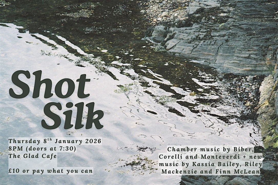 Shot silk is a type of fabric, made by weaving together differently coloured threads to produce a material that preserves the distinct colours, shifting and shimmering between them depending on the angle and light.