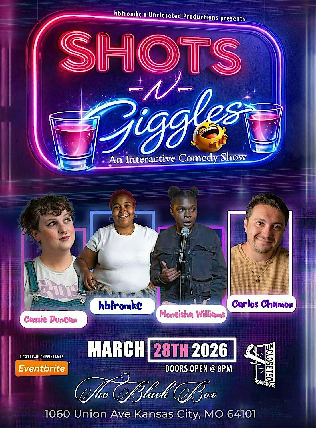 From the mind of hbfromkc, Shots N Giggles is BACK! At usual comedy shows when a comic lands a joke, you laugh, right? Well, take that one step further by yelling out "shots!", and the comic has to take one right there on stage! So I guess at this show, you could say the audience calls the shots! You don't want to miss this hilariously chaotic, one-of-a-kind show!