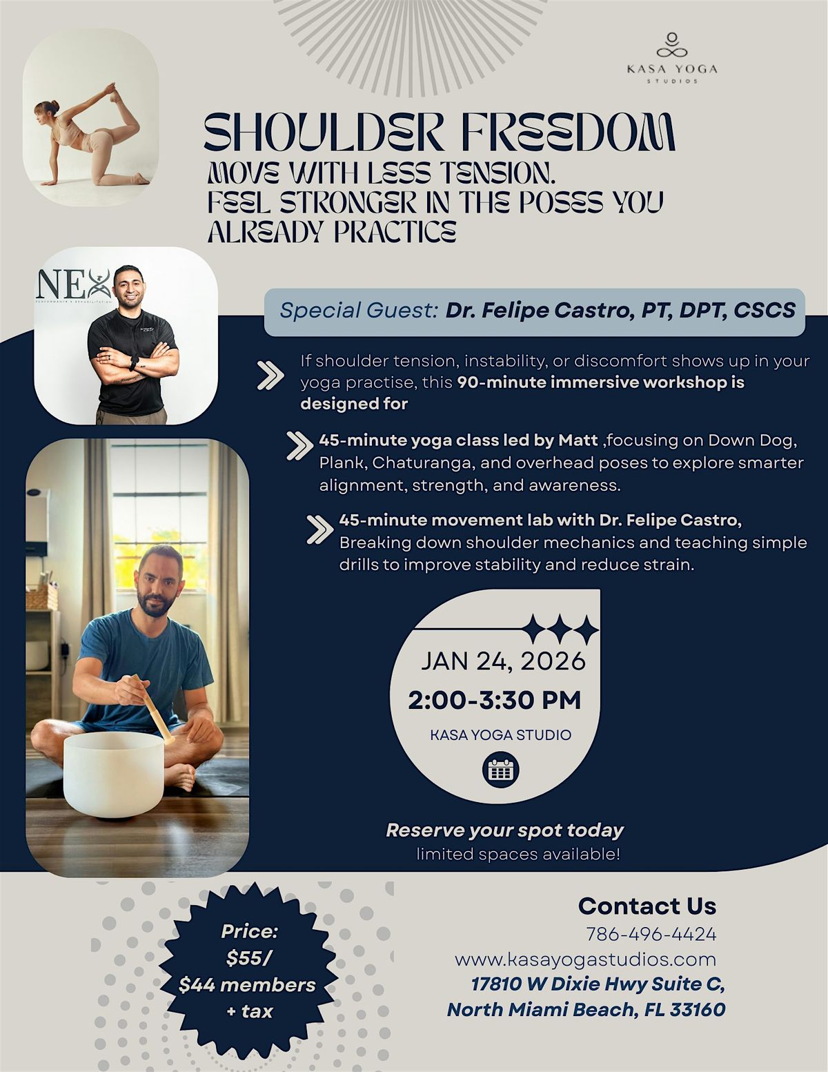 Rather than stretching alone, Dr. Felipe will guide you through a practical approach to improving shoulder mobility, stability, and control, so your practice feels lighter, stronger, and more supported.