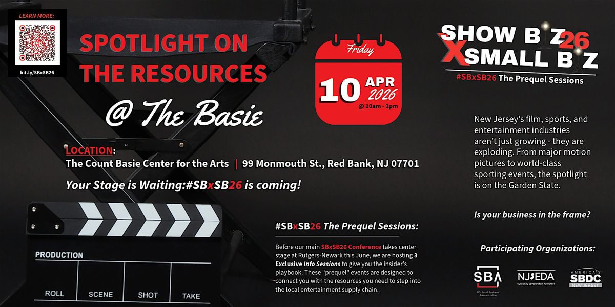 The Count Basie Center for the Arts has stood for a century as a beacon of creative excellence. Now, it serves as the stage for your business's next big breakthrough. Join the SBA NJ District Office, NJSBDC at Brookdale Community College, the NJEDA, NJBAC and other business development organizations for a high-impact prequel to SBxSB26 designed for the modern "art-preneur."