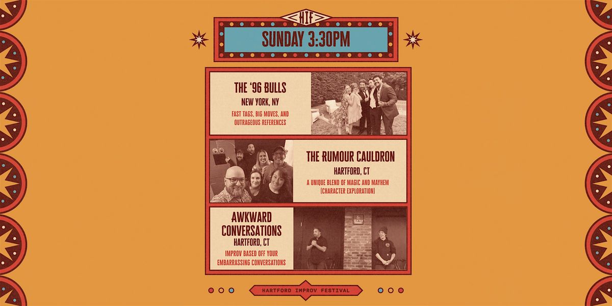 Improv comedy featuring The ‘96 Bulls (New York, NY), The Rumour Cauldron (Hartford, CT), Awkward Conversations (Hartford, CT)