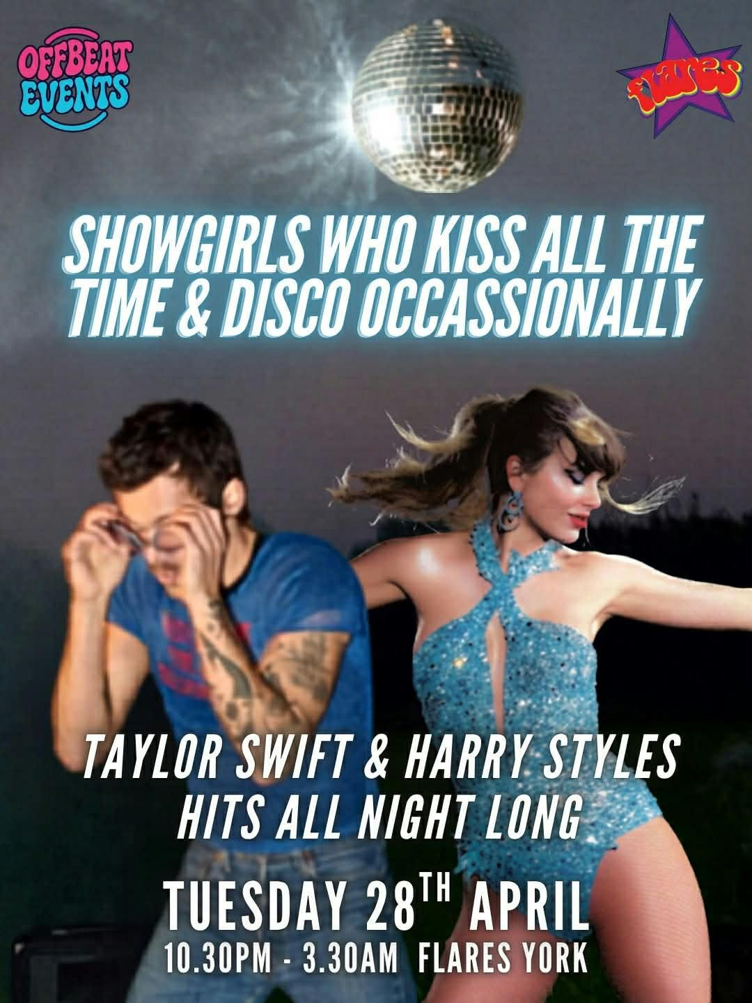 ✨ Showgirls Who Kiss All The Time & Disco Occasionally ✨ is taking over Flares York for the ultimate pop showdown…💖 Taylor Swift vs Harry Styles ALL NIGHT LONG! 💖