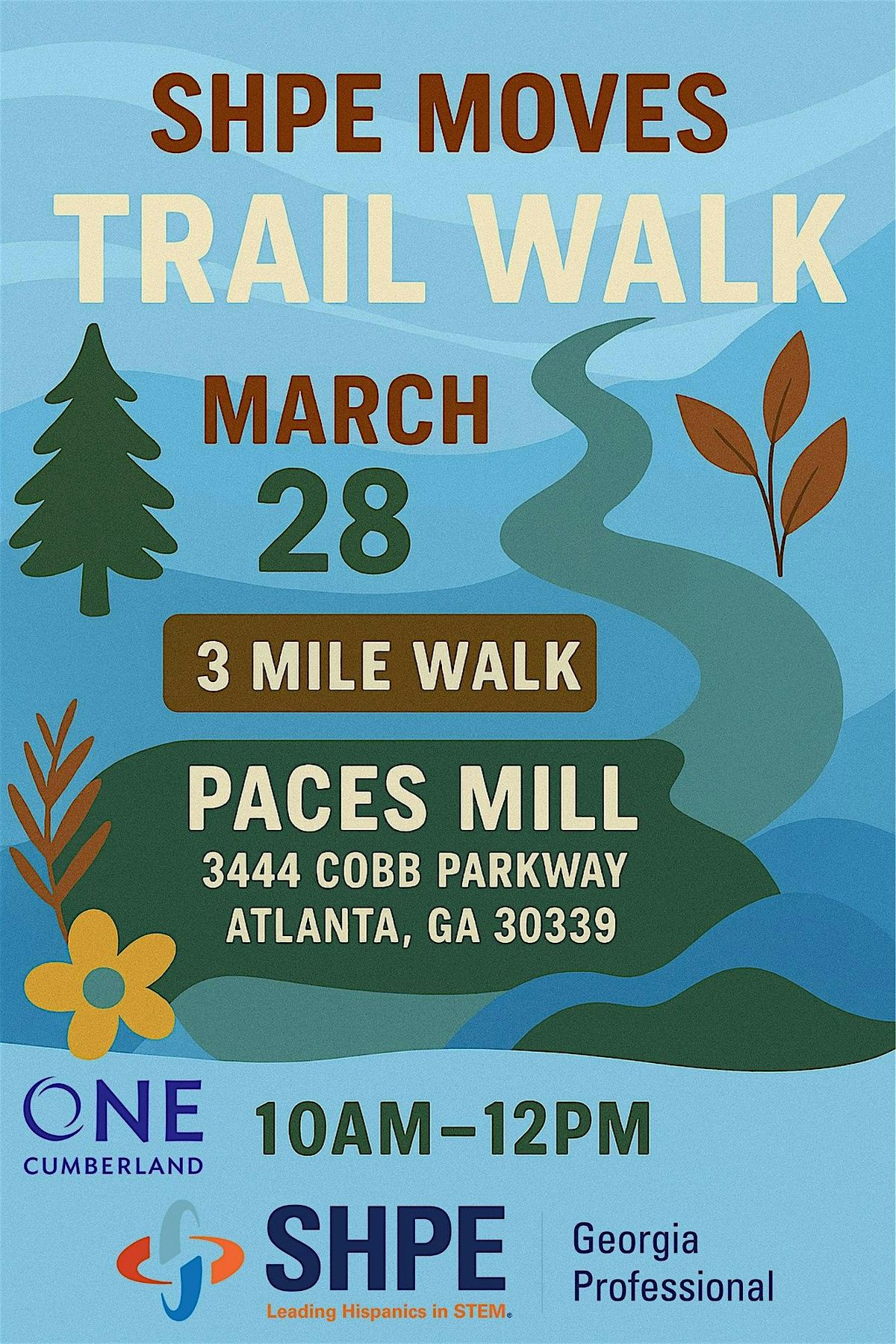 On March 28 at Paces Mill (3444 Cobb Parkway, Atlanta, GA 30339)! In collaboration with our community partner One Cumberland, enjoy a refreshing 3-mile walk while connecting with friends and fellow professionals in the SHPE community. This family-friendly event is a great opportunity to get active, unwind, and explore beautiful trails together—feel free to bring the whole family. The walk will take place 10 AM – 12 PM, so bring your walking shoes and positive vibes. We hope to see you on the trail!