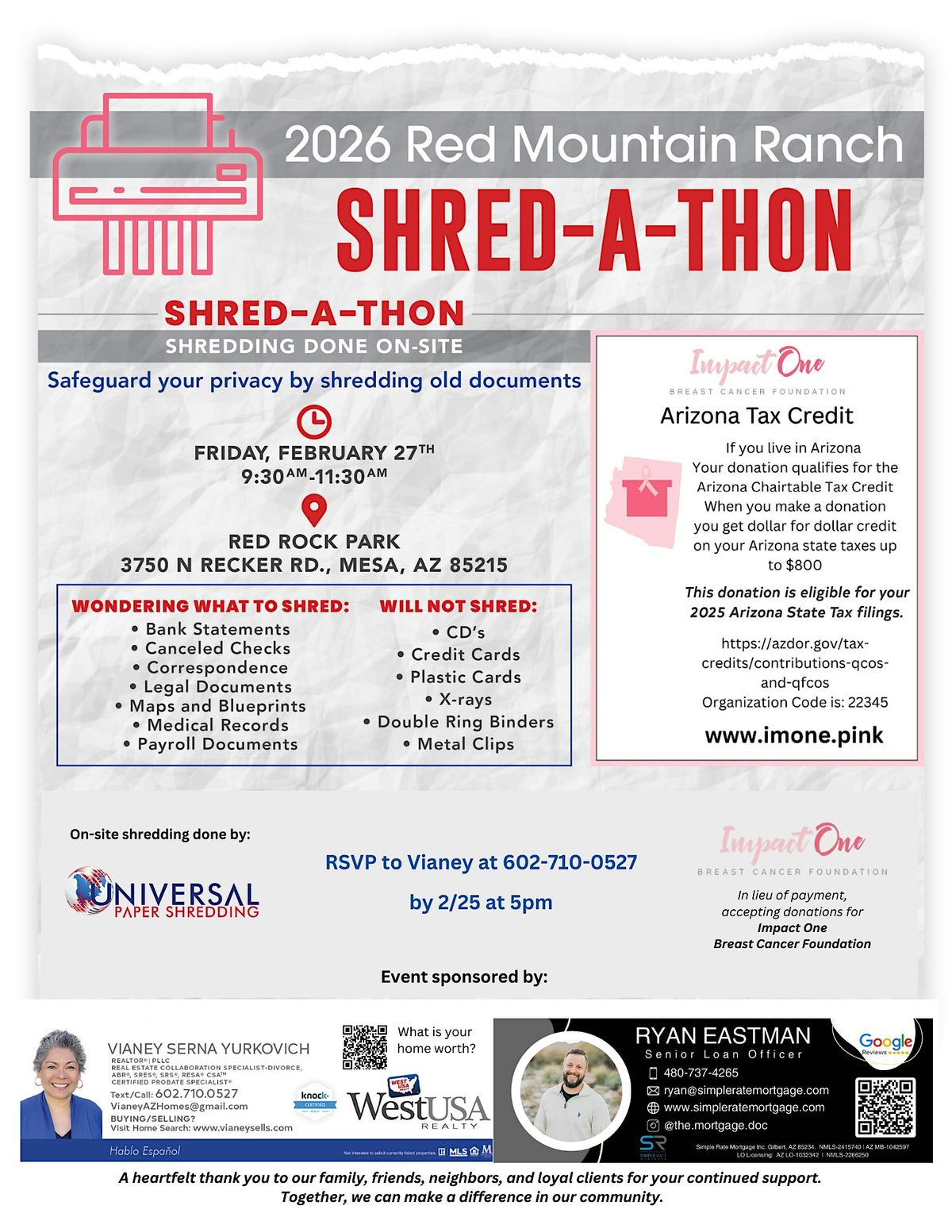 SHRED-A-THON: Protect your privacy with on-site document shredding. RSVP by 2/25 at 5pm. In lieu of payment donation accepted for IMPACT ONEAbout this Event