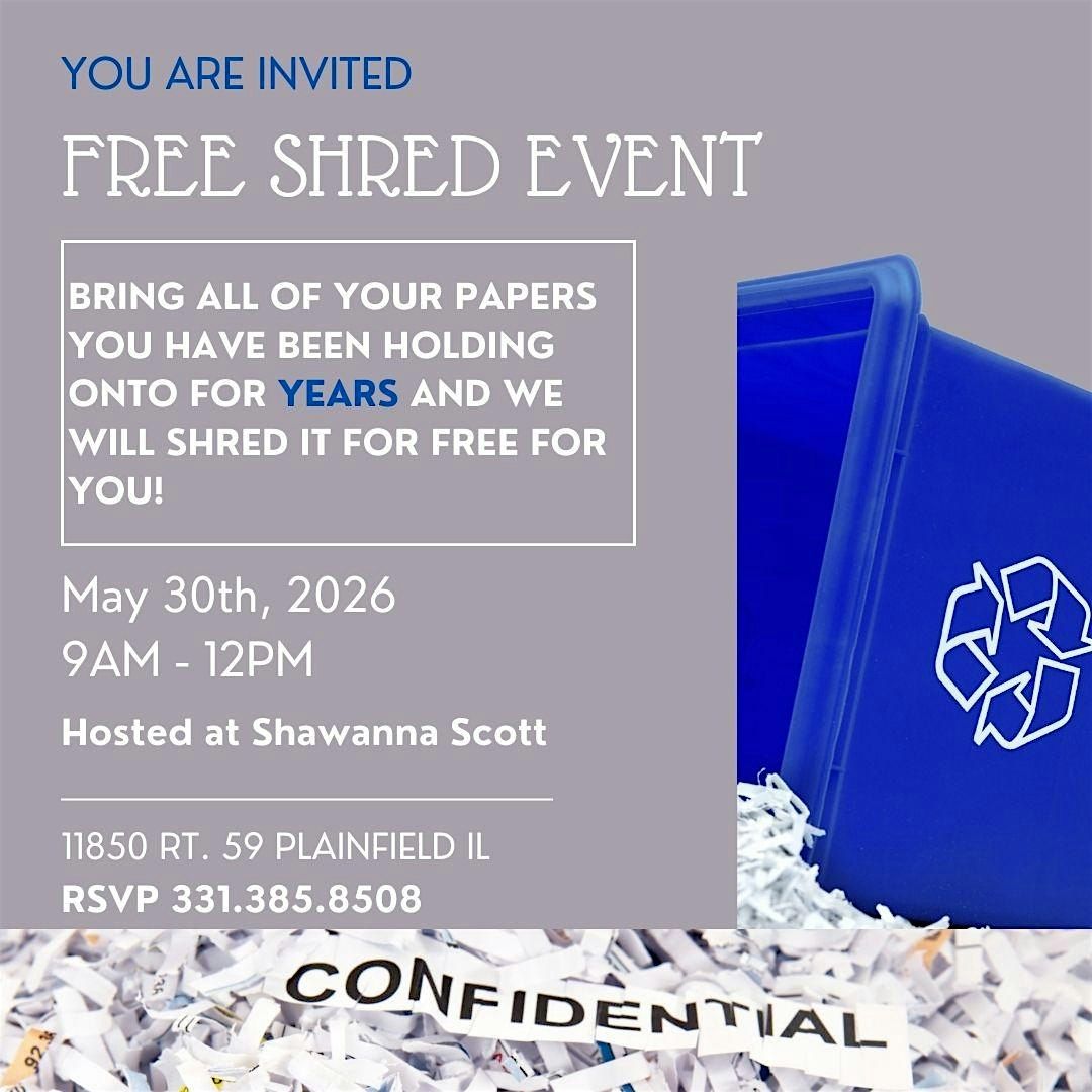 Join Shawanna & Co. for a day of secure document shredding! Safely dispose of your old paperwork and sensitive documents with peace of mind. Protect your identity and declutter your space all at once. Don't miss out on this opportunity to shred it and forget it!