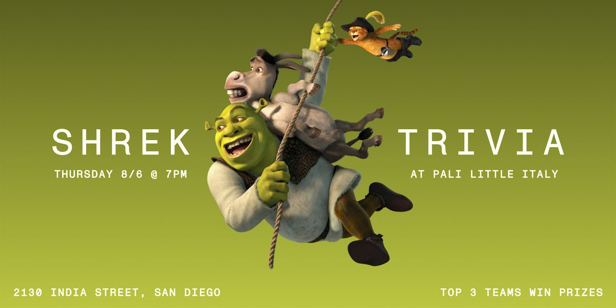 Voted Best Trivia Night in San Diego by the SDReader, Twisted Trivia is more than just a quiz — it’s a trivia experience that guarantees multiple ways to win. Expect gameshow-style rounds like Picture Round and Family Feud, wine for one lucky team, and prizes for the top Shrek trivia teams.