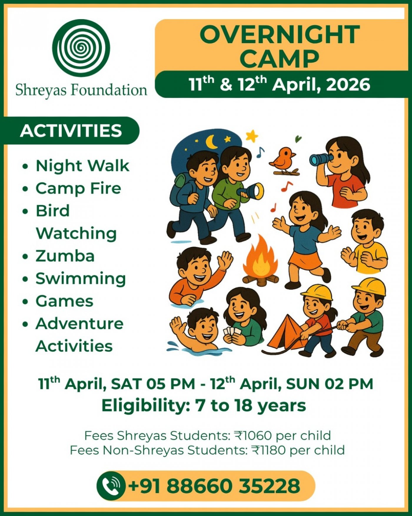 Experience the magic of the outdoors and create memories that will last a lifetime. See you at the Shreyas Foundation Overnight Camp - where adventure awaits!