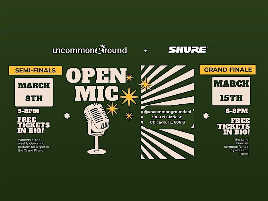 Step into a world of electrifying talent and vibrant performances at Uncommon Ground's Open Mic Grand Finale Competition! Join us for an unforgettable night of music as we celebrate the rising stars of the arts community.