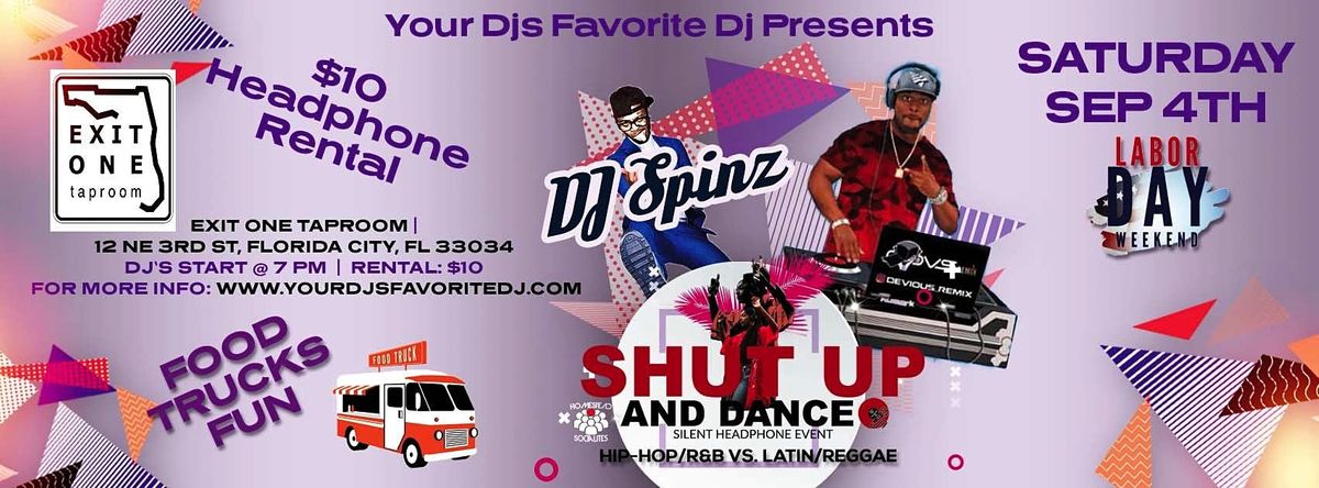 Come join the fun @ "Shut Up And Dance" Silent Headphone Party. We've moved to one of the hottest New venues down south EXIT ONE Taproom. Food trucks fun, Games (Pool, Jenga, Giant Connect 4, and more)and Drink to 2 of the best local Dj's battling for your ears.