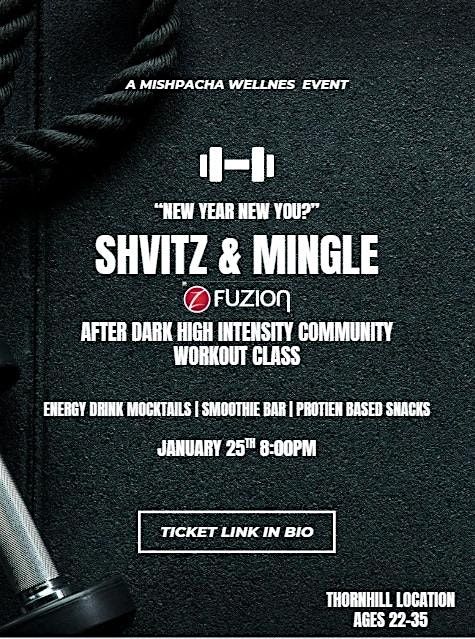 Shvitz & Mingle is a high-intensity, after-dark community workout designed to help you kick off the new year feeling strong, confident, and connected. Hosted by Mishpacha Wellness in collaboration with Fuzion, this unique fitness experience blends sweat, music, and social energy in a fun, welcoming environment.