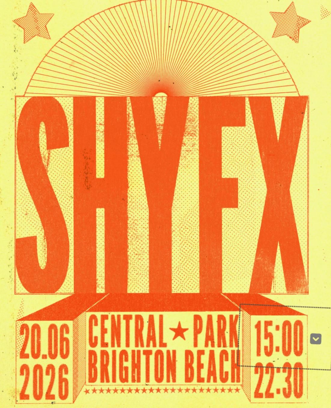 The one and only SHY FX hosts and curates his own line up at Central Park on Saturday 20th June.• Unique Open-Air Seafront Pop-Up Venue