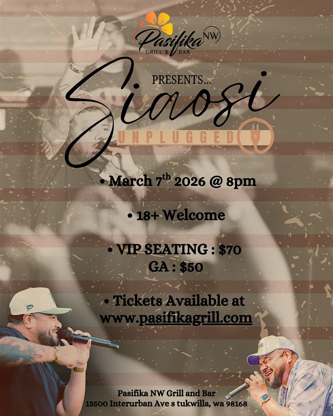 Now he’s bringing it all to you...At Pasifika Northwest Grill and Bar... up close and unplugged.