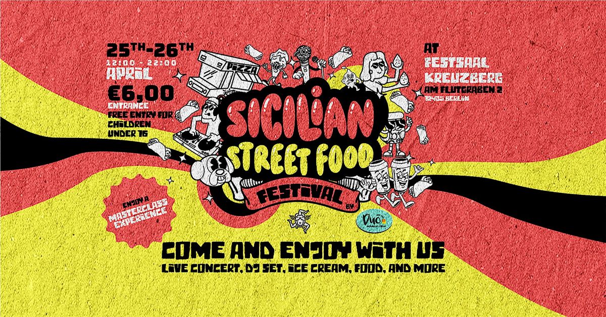 For two days, Berlin transforms into a little corner of Sicily.Join us at Festsaal Kreuzberg for a vibrant festival celebrating Sicilian street food, music, culture and community.Over the weekend you will discover authentic flavors, traditional recipes and contemporary Sicilian music — all in one place.What to expect• 20 Sicilian street food stands