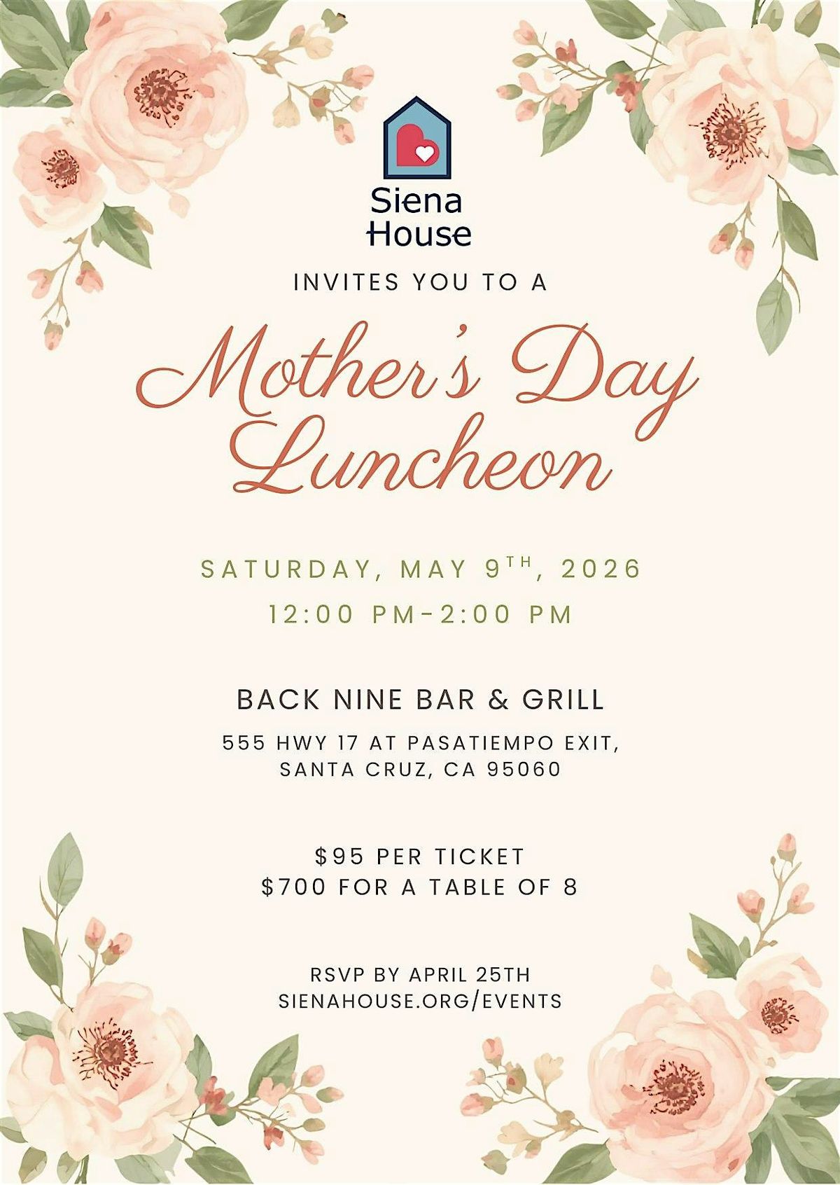 Join us for Siena House’s annual Mother’s Day Luncheon on May 9, 2026 from 12:00 p.m. to 2:00 p.m. at Back Nine Bar & Grill.