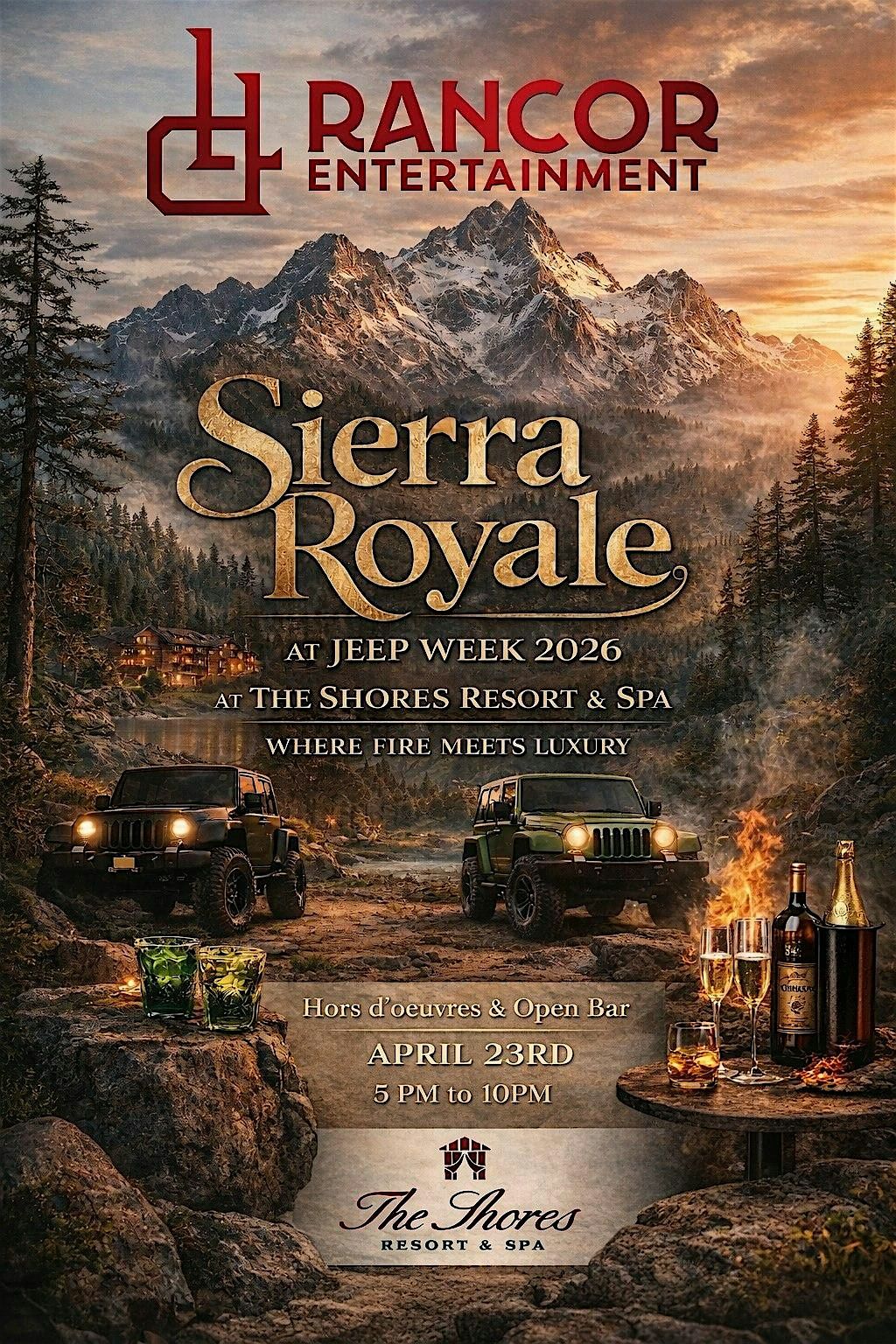 Sierra Royale is an exclusive Jeep Week 2026 event at The Shores Resort in Daytona Beach. Inspired by the Sierra Mountain Range, this luxury gathering offers a relaxed coastal setting with ocean views, hors d’oeuvres, and an open bar. Enjoy an intimate, upscale atmosphere and meet other Jeep Enthusiasts.