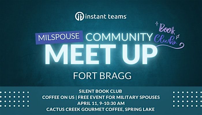Hey Milspouses! Come join us for a fun and casual in-person meetup near Fort Bragg. It's the perfect chance to grab a cup of coffee (thanks to Instant Teams) and connect with fellow military spouses in the community. Bring a book and just sit back and read, or share with other spouses. Whether you're new to the area or a seasoned pro, this chill gathering is all about taking some quiet time for yourself, sharing stories, making friends, and enjoying some quality time together. Plus, if you're looking for remote jobs, Instant Teams has you covered! Don't miss out on the fun and great company!