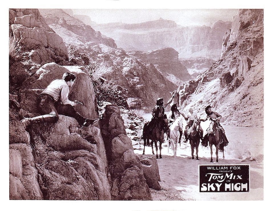 Tom Mix was the first superstar of westerns, starring in nearly 300 films in a career that spanned four decades. In SKY HIGH, Mix portrays Grant Newbury, a deputy inspector of immigration stationed along the U.S.-Mexico border near Calexico, tasked with breaking up a smuggling ring that is transporting Chinese immigrants into the U.S. This plot point is a stark reminder that the era of the Chinese Exclusion Act and its successor legislation extended all the way to the 1940s, as well as having surprising resonance to the highly-charged topic of immigration today. But Newbury's real task is to play the hero, which he does impressively here, both on horseback and from the cockpit of an airplane. The smugglers' trail ultimately leads to the Grand Canyon, which is photographed spectacularly and provides a unique setting for many climbing stunts and serpentine chases. DIR/SCR Lynn Reynolds, PROD William Fox. U.S., 1922, b&w, 58 min. Silent with English intertitles. NOT RATED