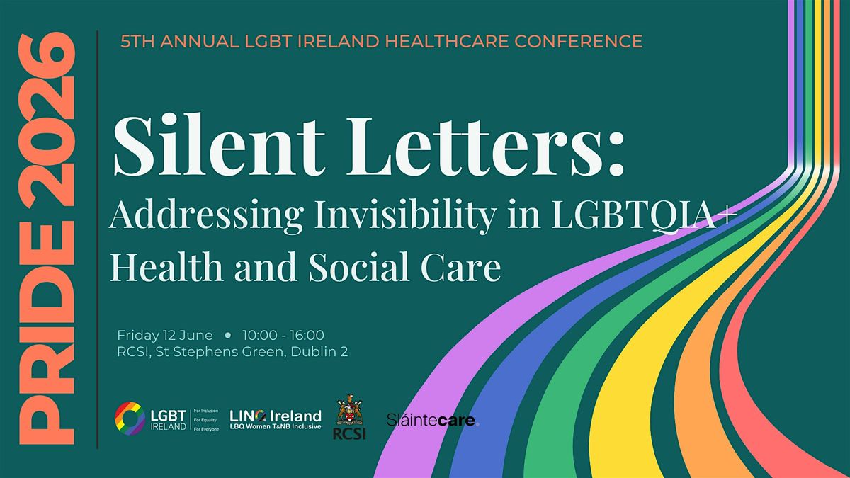 We are delighted to announce LGBT Irelands 2025 Pride Healthcare Conference Silent Letters: Addressing Invisibility in LGBTQIA+ Health and Social Care to be held on Friday, June 12th at the RCSI (Royal College of Surgeons in Ireland) on St. Stephens Green from 10:00am – 4:00pm.