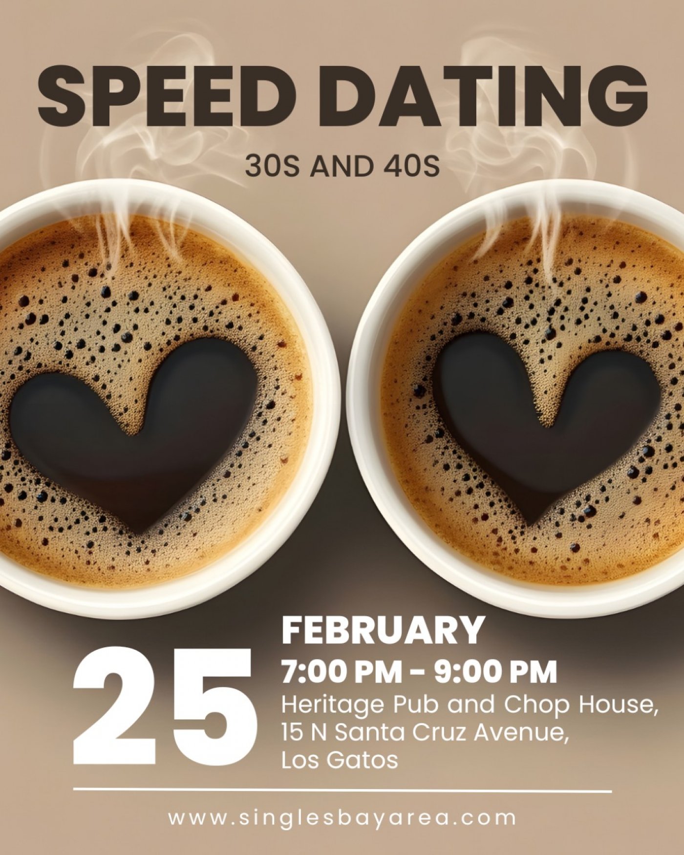 Meet new friends, 5 minutes at a time, at a fun venue! Ages 30s and 40s. Dress to impress! Wednesday, Feb 25, 2026, 7:00 pm – 9:00 pm