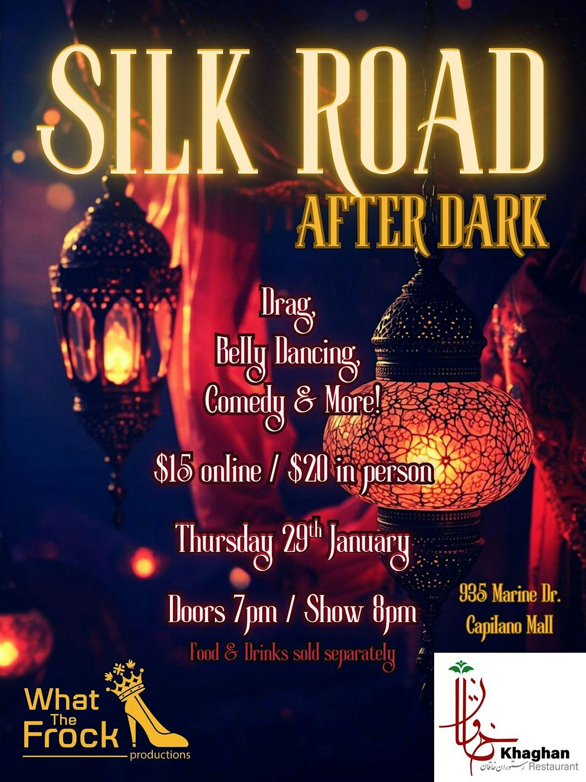Get ready for an unforgettable night in North Van! Experience a wild mix of drag performances, sizzling belly dancing, and hilarious comedy. This event is the perfect way to spice up your evening with vibrant entertainment and good vibes. A cultural explosion of Middle Eastern and Desi performances, and a sprinkle of British humour. Don’t miss out on the fun—come join the party at Silk Road After Dark!