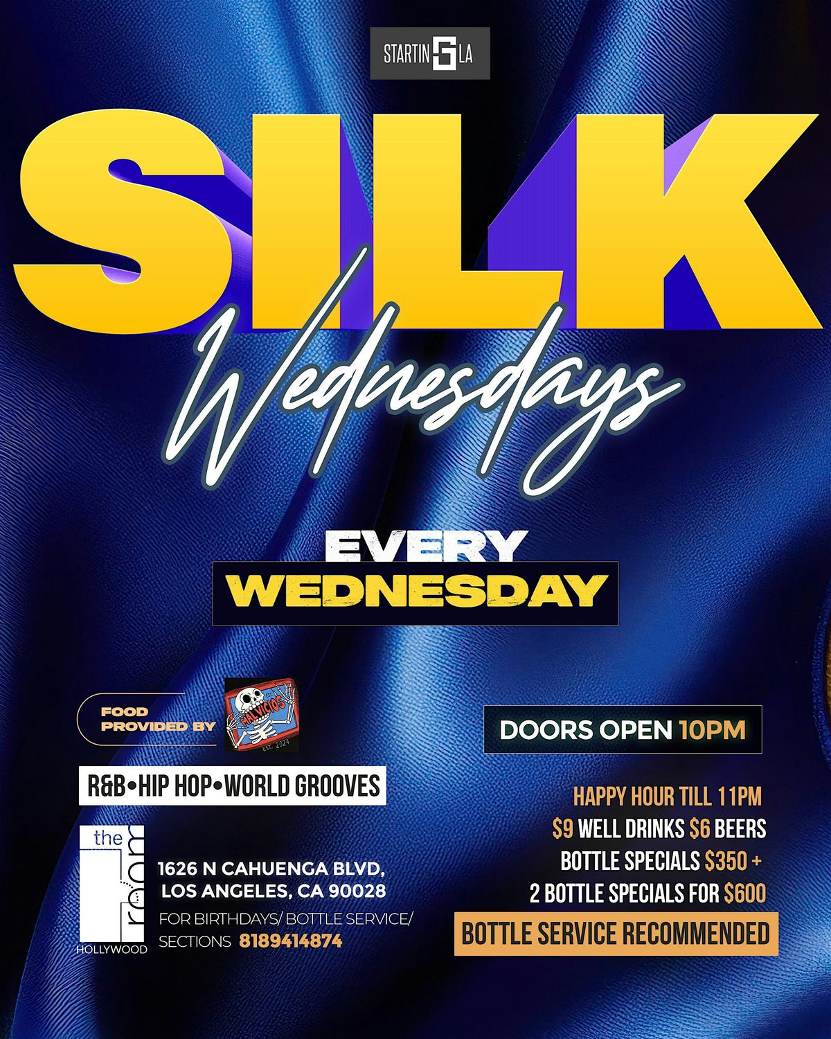 Silk Wednesdays brings elevated nightlife vibes to the heart of Hollywood every Wednesday at The Room, located at 1626 Cahuenga Blvd. Immerse yourself in a smooth blend of R&B, Hip Hop, and World Grooves, curated to set the tone for a stylish midweek escape.