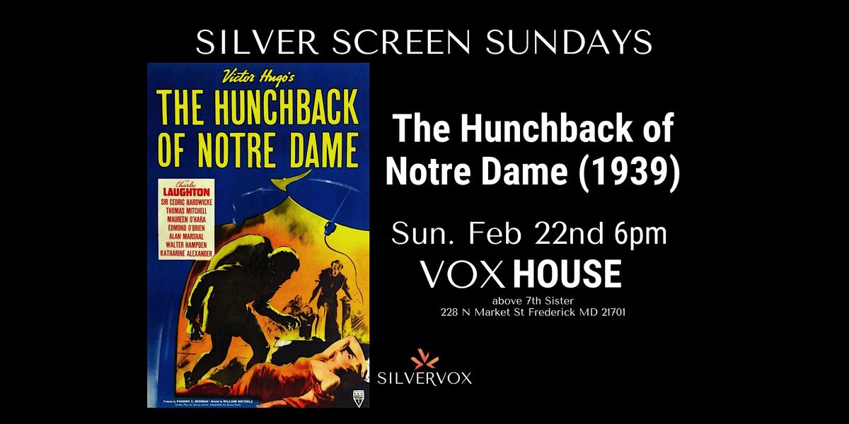 Join us at The Vox House for The Hunchback of Notre Dame (1939), William Dieterle’s epic adaptation of Victor Hugo’s timeless novel.Featuring a legendary performance by Charles Laughton as Quasimodo, this classic brings tragic love, obsession, and sacrifice to the towering heights of Notre Dame Cathedral.