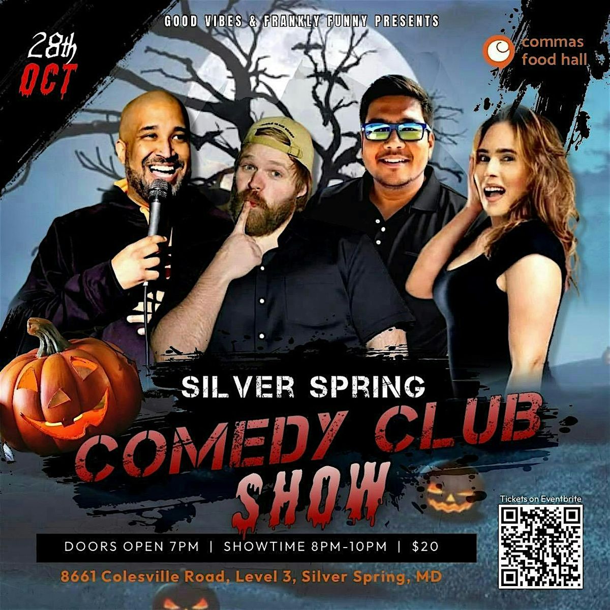 Silver Spring Comedy Club Show is here with an early Halloween Edition to bring good vibes, great food, and huge laughs. Featuring comics from all over the country who've performed at Warner Theatre, Lincoln Theatre, DC Improv, and more.