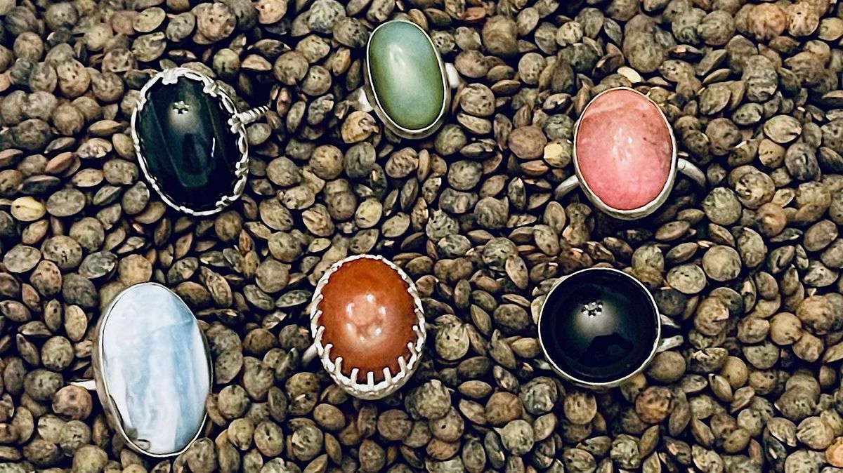 Expand your basic bezel setting skills to create a cabochon set ring in this Intermediate level class. Learn to work with different wire gauges, shapes and patterns to size a well fitting shank and set a stone of your choosing. There will be a variety cabochons to choose from in class but feel free to bring your own round or oval , medium dome cab, no larger than 18x25mm