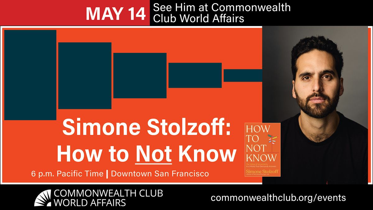 Now journalist and former IDEO design lead Simone Stolzoff comes to Commonwealth Club World Affairs to discuss his guide to navigating uncertainty, spelled out in his new book How to Not Know. From politics to our careers to our personal lives, we don’t know what the future holds. Yet, Stolzoff says, our capacity to tolerate this uncertainty is declining.