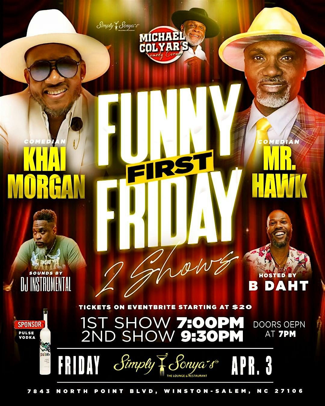 Simply Sonya’s FUNNY FIRST FRIDAY’s Hosted by Comedian BDHAT. Featuring Comedian Mr. Hawk & Comedian Khai Morgan headlining!