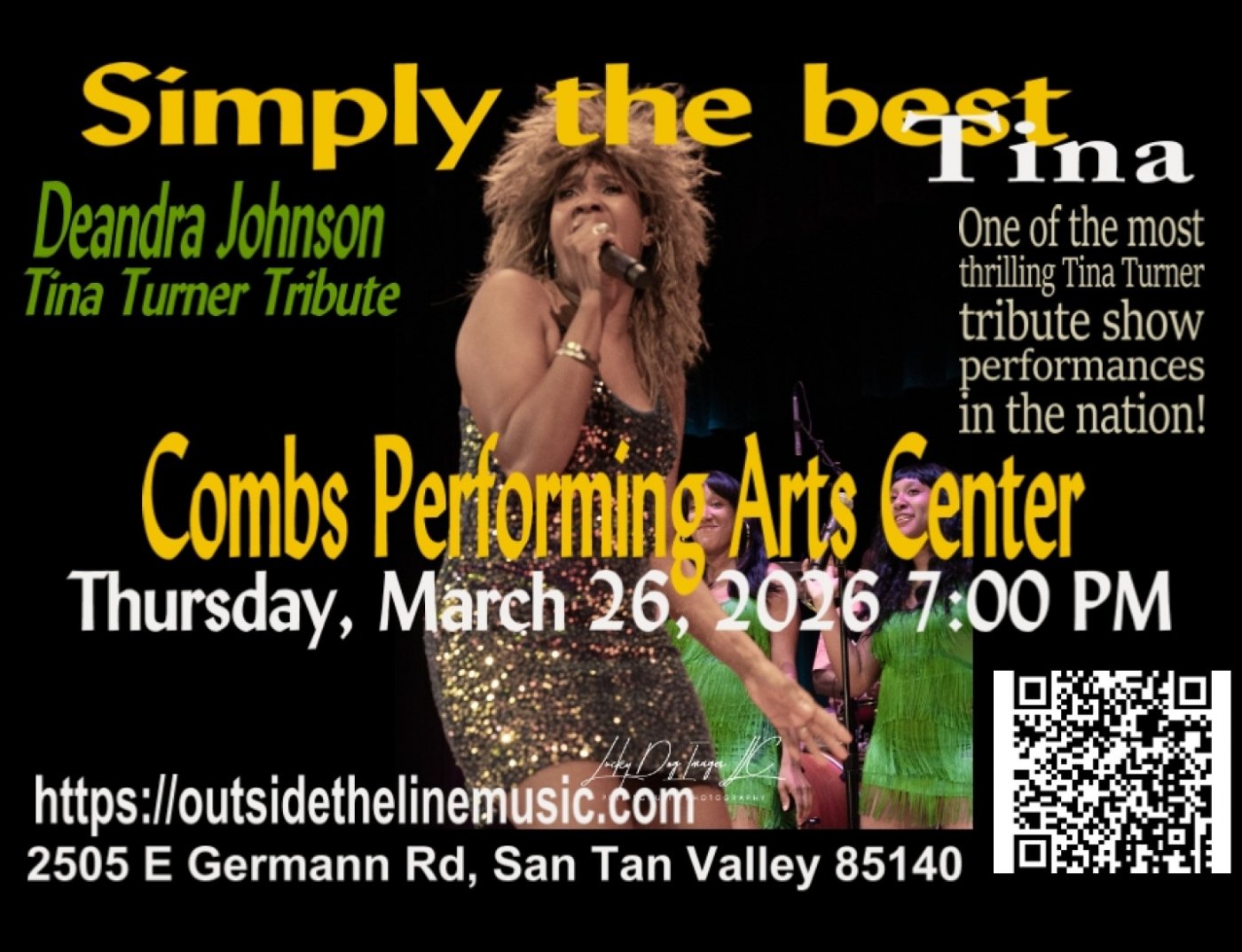 “Simply the Best AZ,” a Tina Turner tribute like no other! For 120 electrifying minutes, DeAndra Johnson channels Tina’s unstoppable spirit with razor‑sharp vocals and a stunning physical resemblance that will leave fans breathless. Backed by a 7‑piece powerhouse band. The show journeys from Tina’s early roots to her 80s megahits. Add four beautiful dancers and backing vocalists, complete with eye‑catching choreography, and you’ve got a dynamic, full‑blown concert experience.