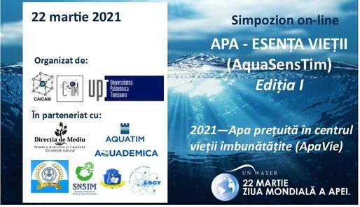 vă invită luni, 22 martie 2021, începând cu ora 13, să celebrăm Ziua Mondială a Apei în cadrul Simpozionului on-line APA - ESENȚA VIEȚII (AquaSensTim).