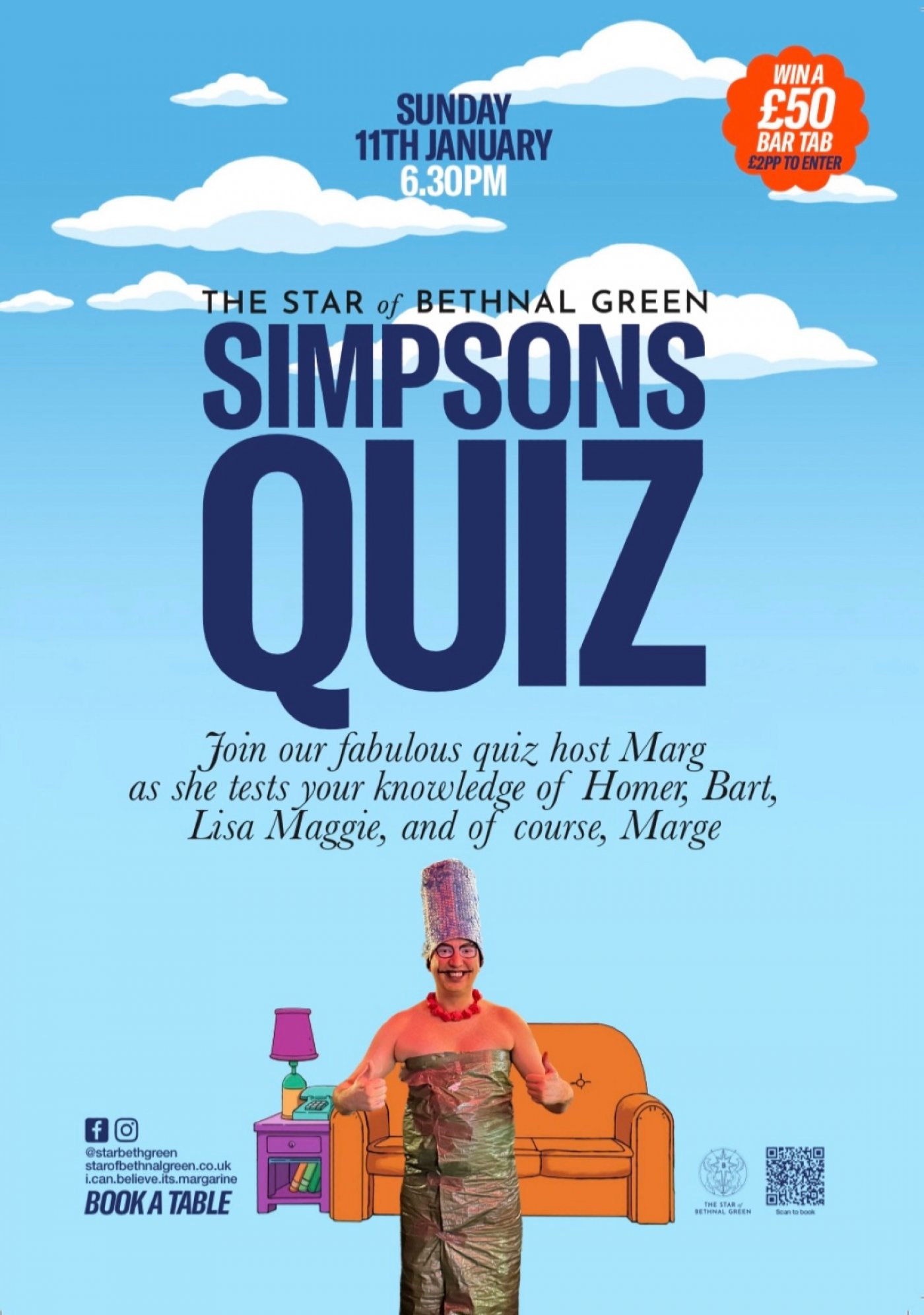 Prove you know the Simpsons better than anyone else and win a £50 bar tab! Plus some extra prizes along the way.